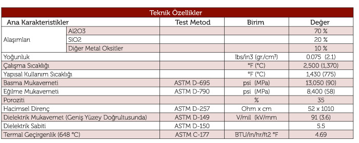 - Ergimiş alüminyum ve ergimiş demir-dışı metal temasına karşı dayanıklı olması