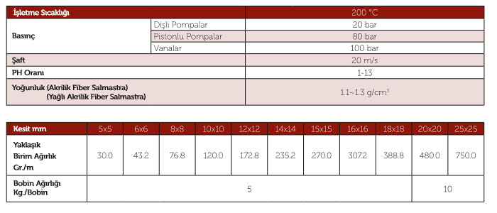 Akrilik fiber salmastraya benzer, farkı yağ emdirilmiş olması ve daha az PTFE ihtiva etmesidir.