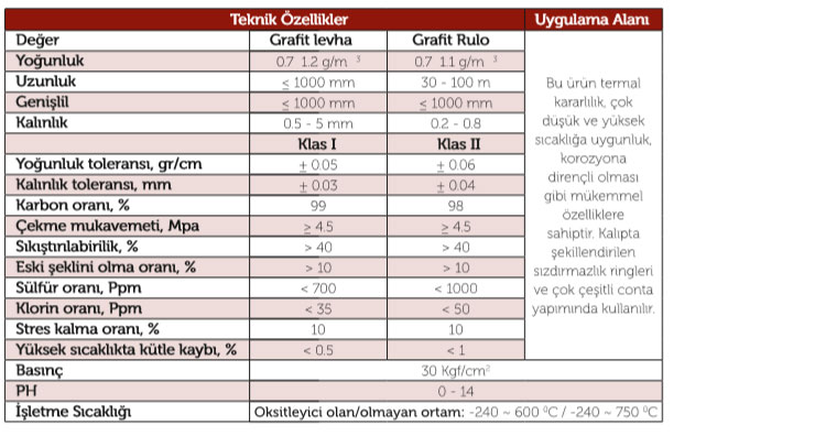 Esnek Grafit Levha kabartılmış saf mineral grafit ile yapılır. Grafit levhalarımız % 99 karbon saflığındadır. Yüksek karbon safiyeti esnek grafit levhaya, daha iyi kimyasal direnç, daha iyi termal geçirgenlik ve daha iyi sızdırmazlık özelliği sağlar. Conta malzemesi olarak, grafit katmanlar halinde veya takviyeli grafit levha olarak üretilir ve yaygın olarak akışkan sızdırmazlığı alanlarında kullanılır. Bu malzeme metal kesme ve şekillendirme işlemlerinde katı yağlayıcı olarak, endüstriyel fırınlarda ve diğer ısıl işlem tezgâhlarında ısı yalıtım malzemesi olarak kullanılabilir.