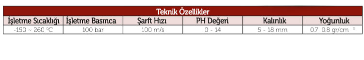 Kimya sanayinde, ilaç sanayinde, gıda işleme tesislerinde kullanılan vanaların hareket millerinde ve flanşların sızdırmazlığını sağlamak için kullanılır. Bu malzeme ile, flanşların, boru bağlantılarının, hidrolik ve pnomatik sistemlerin sızdırmazlığı kolayca ve güvenli bir şekilde sağlanır. Bunun yanında cam, plastik flanşlar, özel şekilli teçhizat ve araç uygulamaları için uygun bir malzemedir.